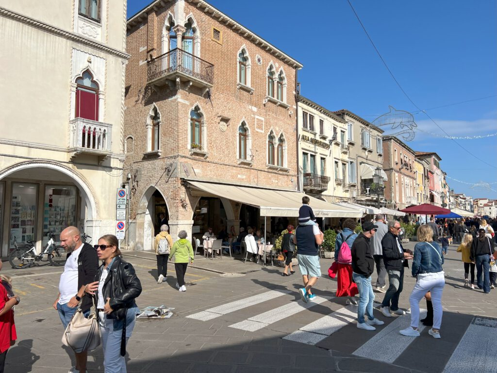 Es ist am Morgen noch etwas kühl, aber später bei Sonnenschein sehr angenehm. Nun geht es heute auf eine Flachetappe in die Lagunenlandschaft. Bei Komoot fand sich sogar ein passender Rundkurs, der sich als sehr hübsch und angenehm zu fahren heraustellte. Zuerst radelten wir in die alte Lagunensstadt Chioggia.