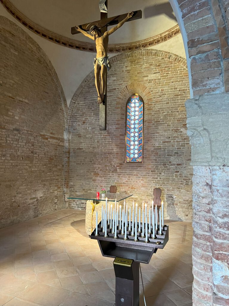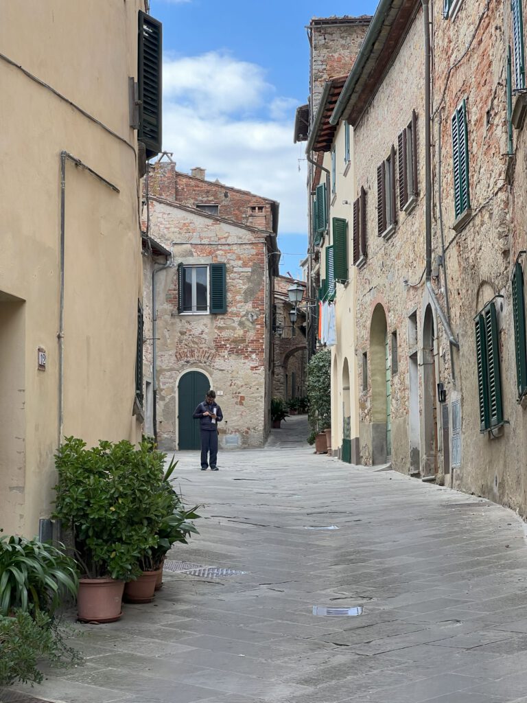 Es war ein kalter Morgen. Sonnig, aber 5°C, für die Toscana zu dieser Zeit etwas untertemperiert. Aber es erwärmt sich rasch und nach dem Frühstück starten wir nach Arezzo. Zuerstradelten wir auf Nebenwegen nach der kleinen Stadt Castiglion Fiorentino.