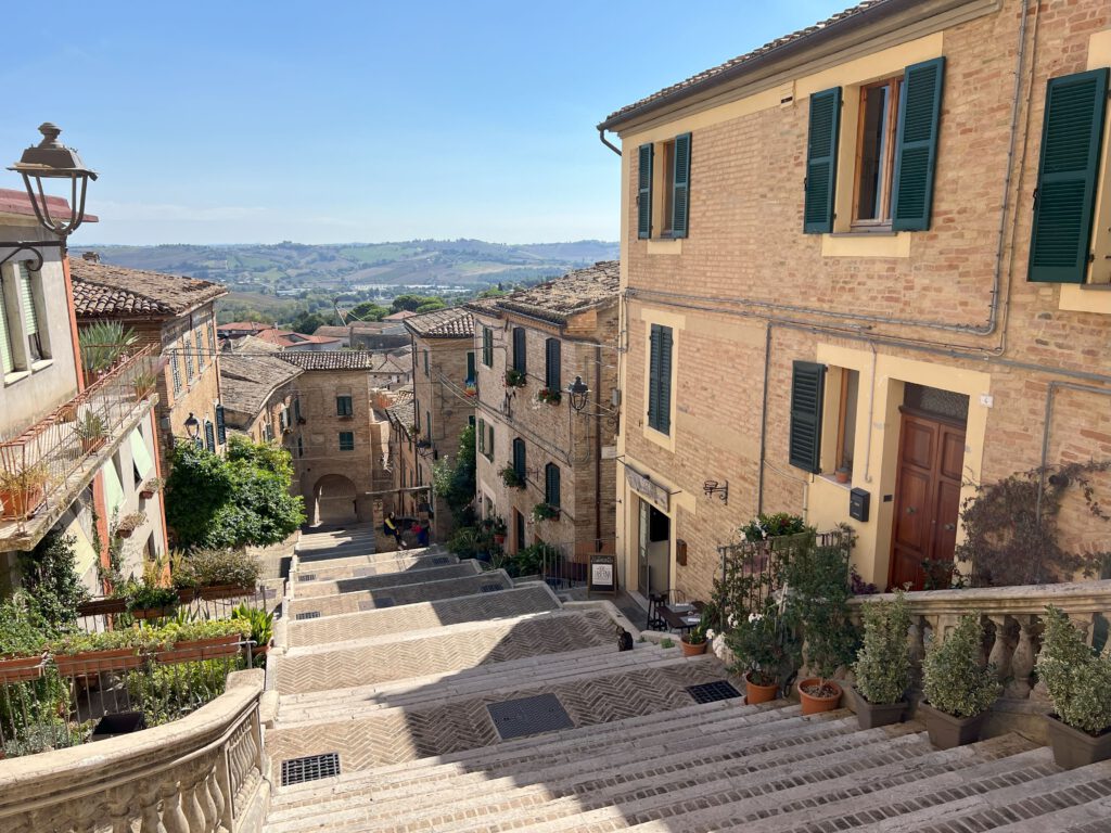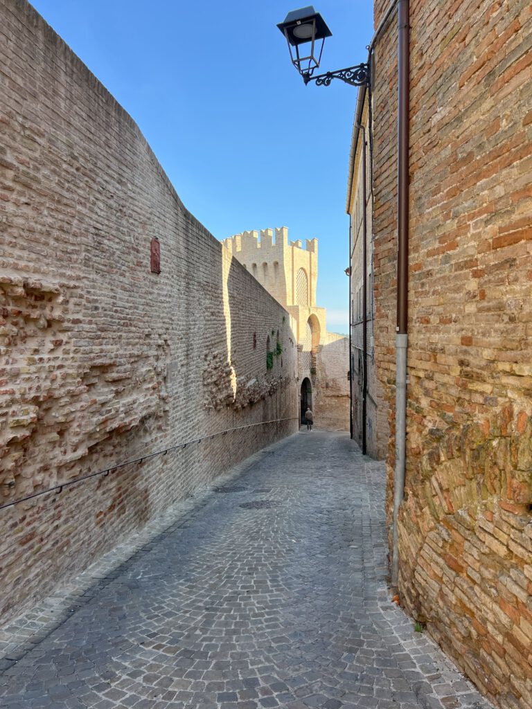 Die Sonne scheint und mit 21°C ist es sehr angenehm und wir machen unsere Rundtour. Auf und ab, nicht sehr lang, aber manchmal sind bis 25 % drin. Aber die Ausblicke auf die Provinz Marken sind wunderschön. Marken hat zwar nicht die Städte der Toskana, aber es gibt doch den einen oder anderen schönen Ort. Wir erreichten das Städtchen Corinaldo.