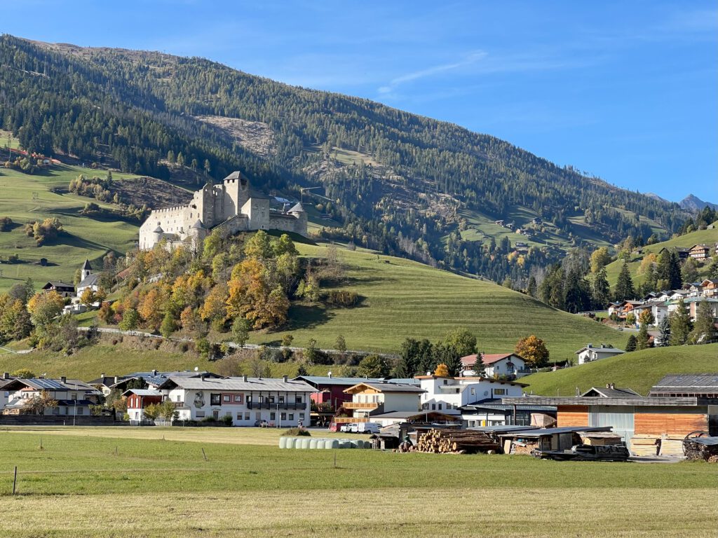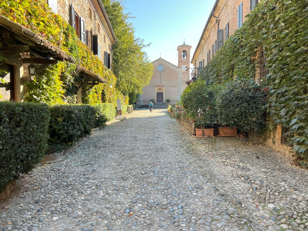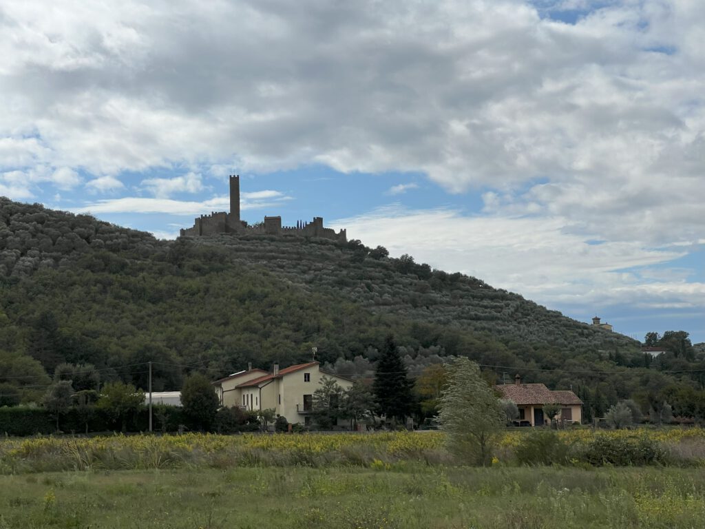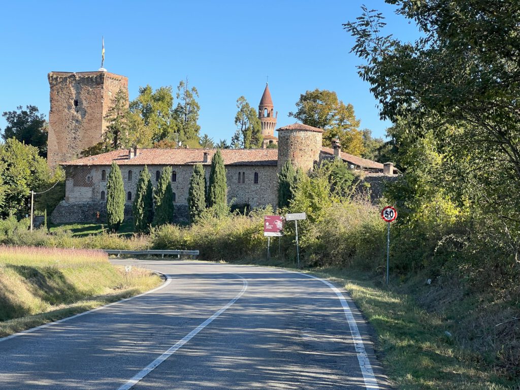 Nachts ist es schon kalt, aber tagsüber kommen wir immer noch auf gut 22°C mit Sonne. Für die heutige Tour habe ich zwei Komoot-Touren gefunden und zu einer vereinigt. Aber der Anfang mit der ersten Tour erwies sich teilweise als Reinfall. Wir wurden über übelste Schotterstrecken geführt. Also wichen wir ab und orientierten uns einfach neu. Am Anfang war es noch die Landstraße und wir trafen dort auf eine Burg, die als Hotel genutzt wird: Castello di Rivalta.