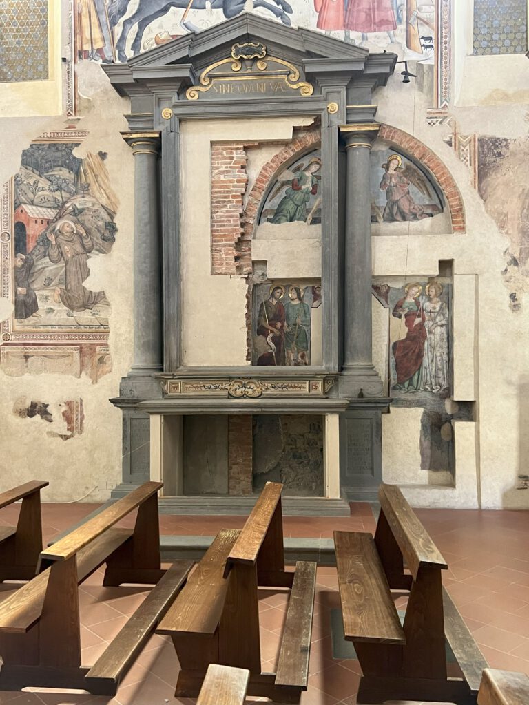 In der Kirche hatte man die alten Wandmalereien mit Gemälden und klassizistischen Säulen überdeckt und zwei freigelegt.