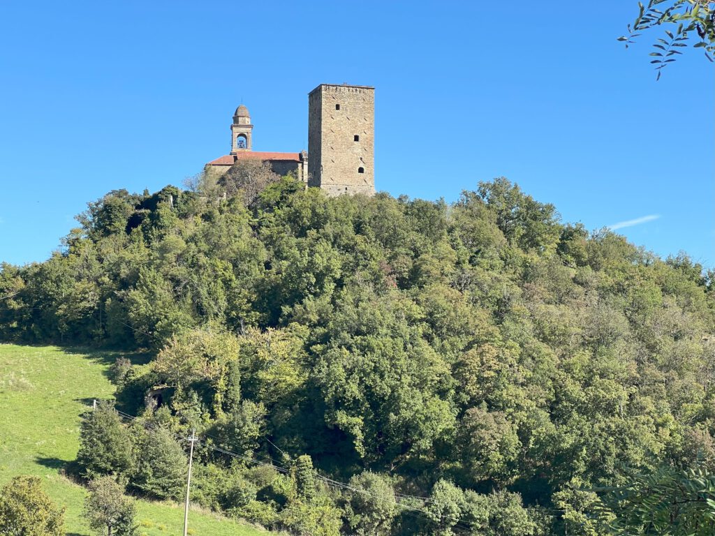 Und gleich wieder bergauf auf der anderen Seite nach dem kleinen Bergdorf Poggione. Drei Häuser und eine Kirche.